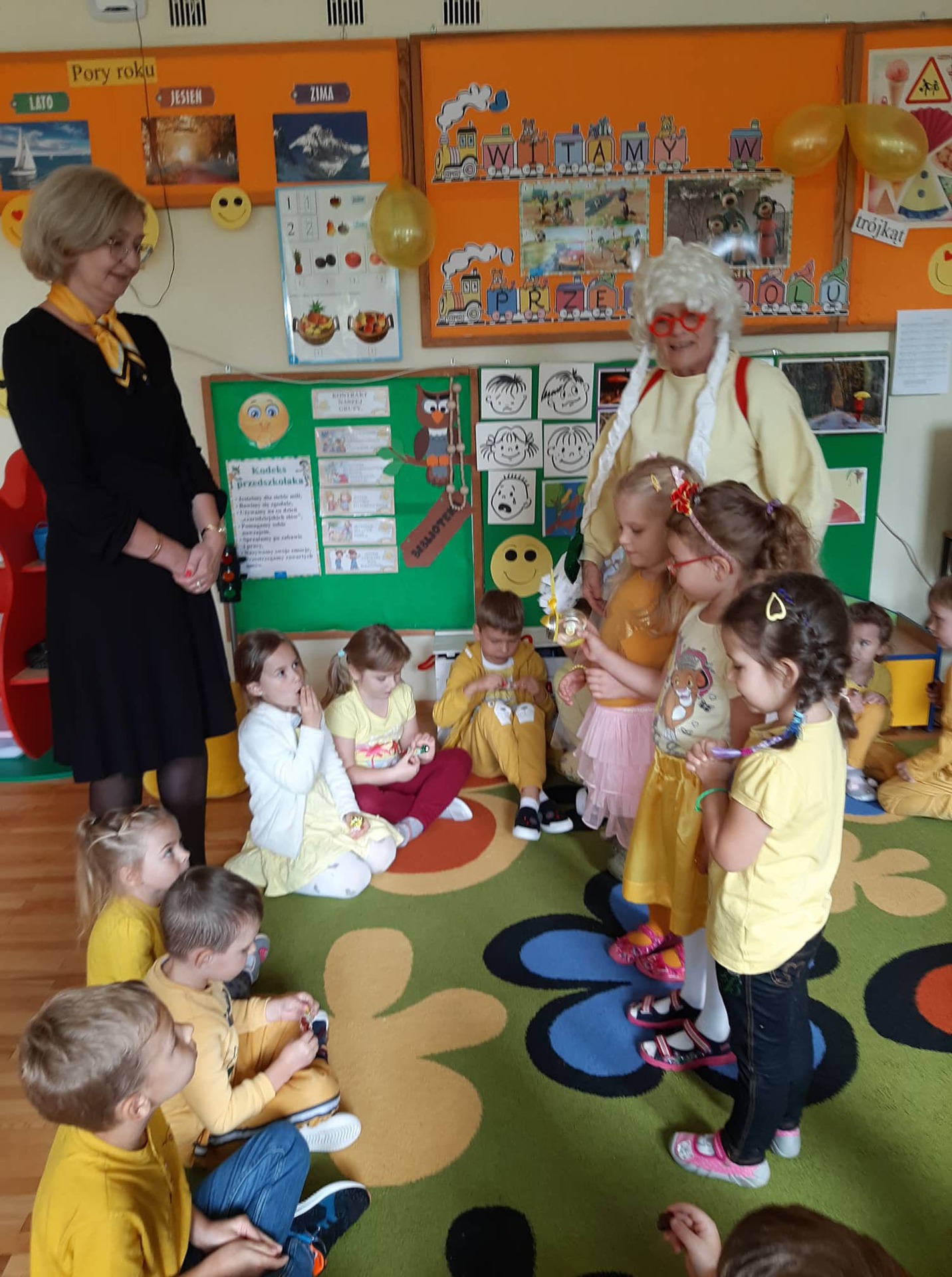 W tym dniu udekorowaliśmy place zabaw żółtymi balonami, obdarowywaliśmy się ciepłymi emocjami, smakowaliśmy potrawy w kolorze żółtym. Przedszkolaki gościły w swoich placówkach znanych sandomierzan, zaprzyjaźnionych z przedszkolami. Z dziećmi spotkali się: w Przedszkolu Samorządowym nr 1 – pani Monika Sakławska – Gawron, pracownik ds. oświaty w Centrum Usług Wspólnych, w Oddziale Przedszkola nr 1 – pani Małgorzata Lipa, kierownik Oddziału Kuratorium Oświaty w Kielcach, Oddział w Sandomierzu, w