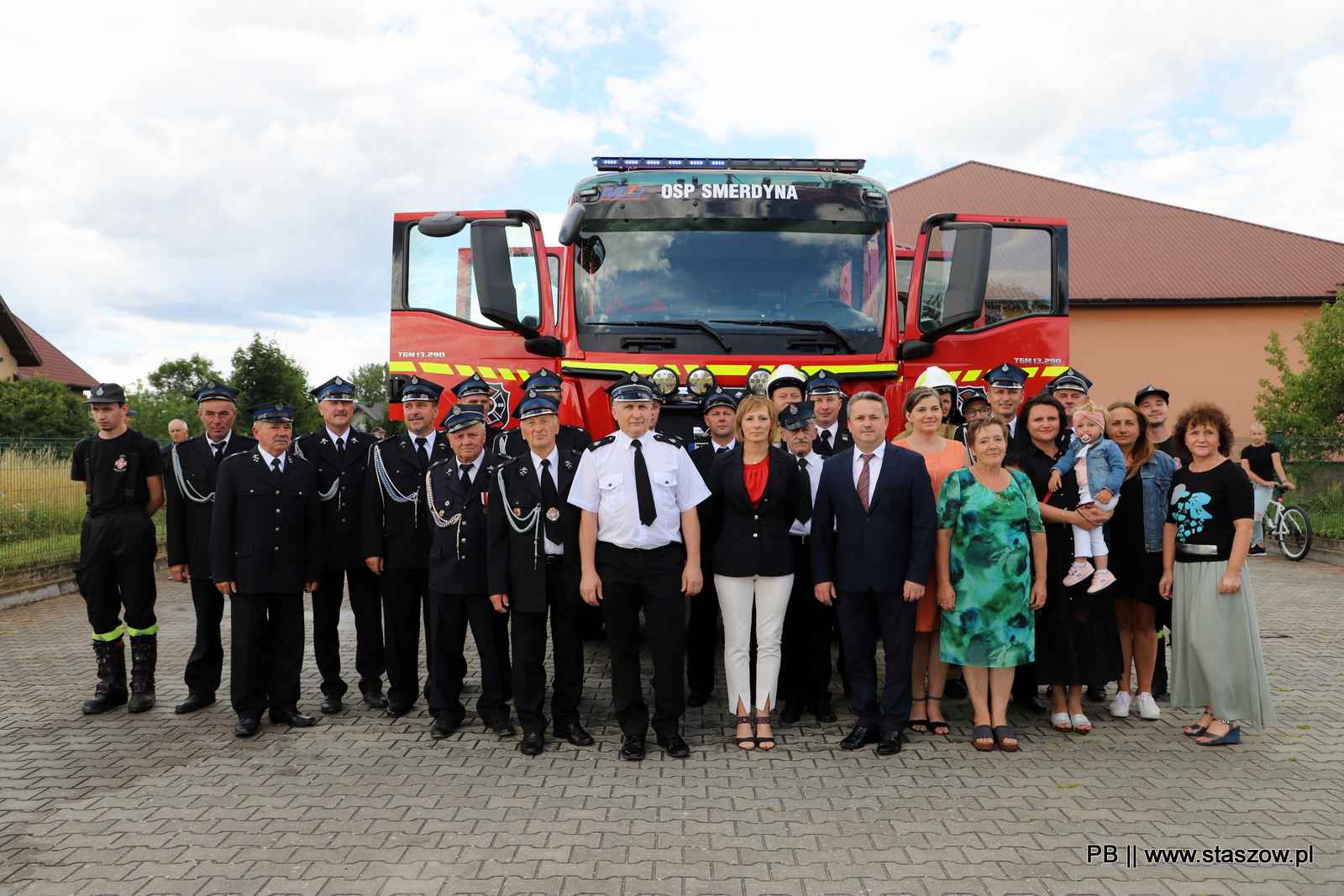 W powitaniu nowego samochodu OSP uczestniczyli licznie zgromadzeni mieszkańcy wsi, druhowie-ochotnicy z OSP Smerdyna, a także władze samorządowe – burmistrz dr Leszek Kopeć, zastępca burmistrza dr Ewa Kondek oraz dr Beata Gajek-Dyl – wiceprzewodnicząca Rady Miejskiej w Staszowie. Włodarz miasta podziękował druhom-ochotnikom za zaangażowanie w niesieniu pomocy społeczeństwu. Podkreślił również, że otrzymany przez OSP Smerdyna samochód jest niezwykle ważny i potrzebny. – Mam nadzieję, że ten nowy nabytek stanie się dla Was jeszcze większą motywacją do działania – podsumował burmistrz Leszek Kopeć. Prezes jednostki, Adam Kowal, podziękował włodarzom oraz Radzie Miejskiej za zaangażowanie w kupnie nowego wozu dla OSP Smerdyna.