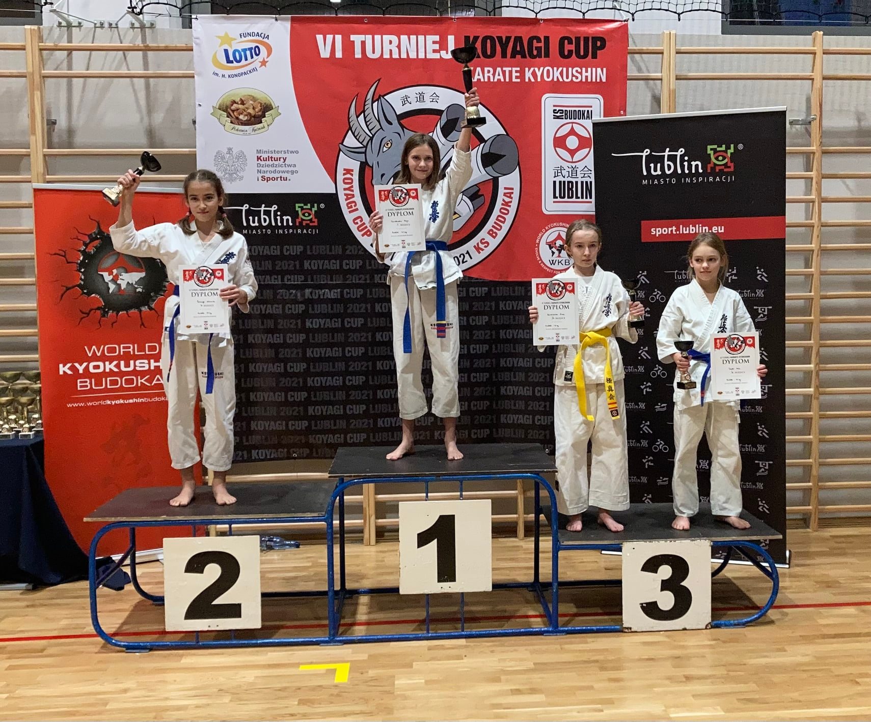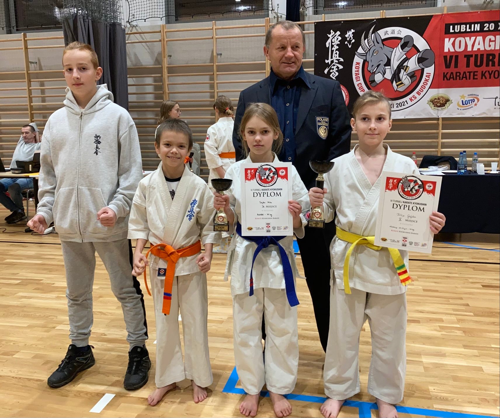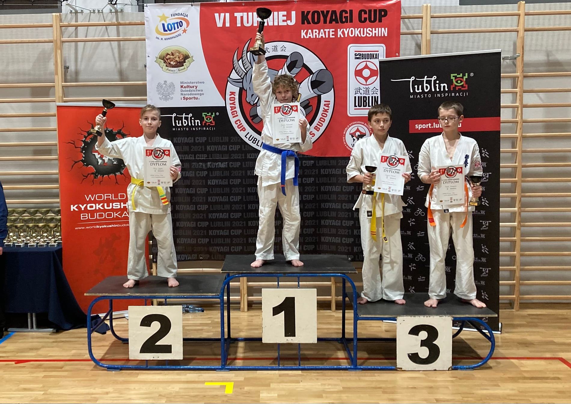W dniu 20.11.2021 w Lublinie odbył się „VI Ogólnopolski Turniej Kyokushin Karate Koyagi Cup”. Nasz Klub reprezentowali: Mila Sojda, Karol Mucha, Filip Gajda i Wiktor Koryciński. Nasi zawodnicy według swojej kategorii wiekowej i wagowej, wywalczyli następujące miejsca na podium: