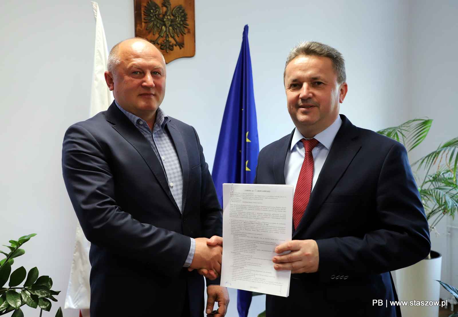 Stosowną umowę podpisał Leszek Kopeć – burmistrz miasta i gminy Staszów przy kontrasygnacie Henryki Skowron – skarbnika miasta i gminy Staszów. Przedmiotem umowy jest wykonanie robót budowlanych, polegających na renowacji Pałacu w Wiśniowej. Teren przy pałacu zostanie zagospodarowany – dotychczasowe utwardzenia terenu przy budynku zostaną rozebrane, a beton przed wejściem będzie skuty. W zamian pojawi się nowe utwardzenie wokół budynku, wraz z opaską z płyt granitowych. Schody będą obłożone płytami z piaskowca. Zakres umowy obejmuje również izolację ścian – rozebranie elementów betonowych, wykonanie wykopów przy budynku, oczyszczenie powierzchni ścian, uzupełnienie ubytków, wykonanie gruntowania i powłokowej izolacji ścian oraz ułożenie folii kubełkowej. Przedmiotem umowy jest także wykonanie odwodnienia budynku – między innymi przygotowanie wykopów pod rury kanalizacji deszczowej i rury drenarskie, a także ich ułożenie oraz zamontowanie studni rewizyjnej. Ponadto wykonawca wykona inwentaryzację geodezyjną oraz opracuje dokumentację z badań archeologicznych.