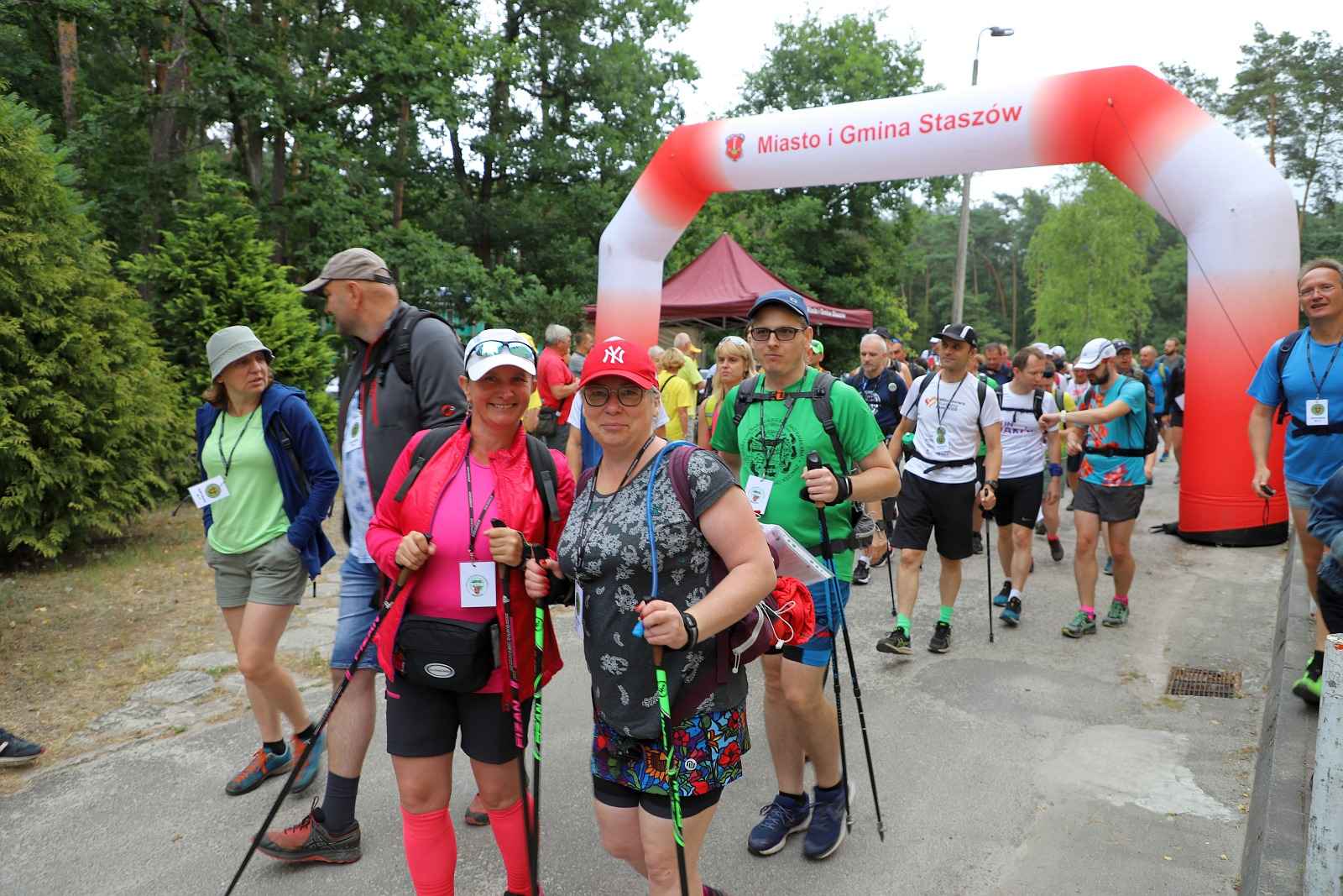 Na starcie, uczestników rajdu powitał dr Leszek Kopeć – burmistrz Staszowa. Mam nadzieję, że tutejsze urokliwe okolice, krajobrazy, zabytki i przyroda spodobają się wszystkim tak bardzo, że będziecie chcieli Państwo odwiedzać nas częściej, a dzisiejsze wydarzenie stanie się cyklicznym – mówił burmistrz. Włodarz życzył piechurom wielu wspaniałych wrażeń oraz bezpiecznej podróży, po czym dał sygnał do wymarszu.