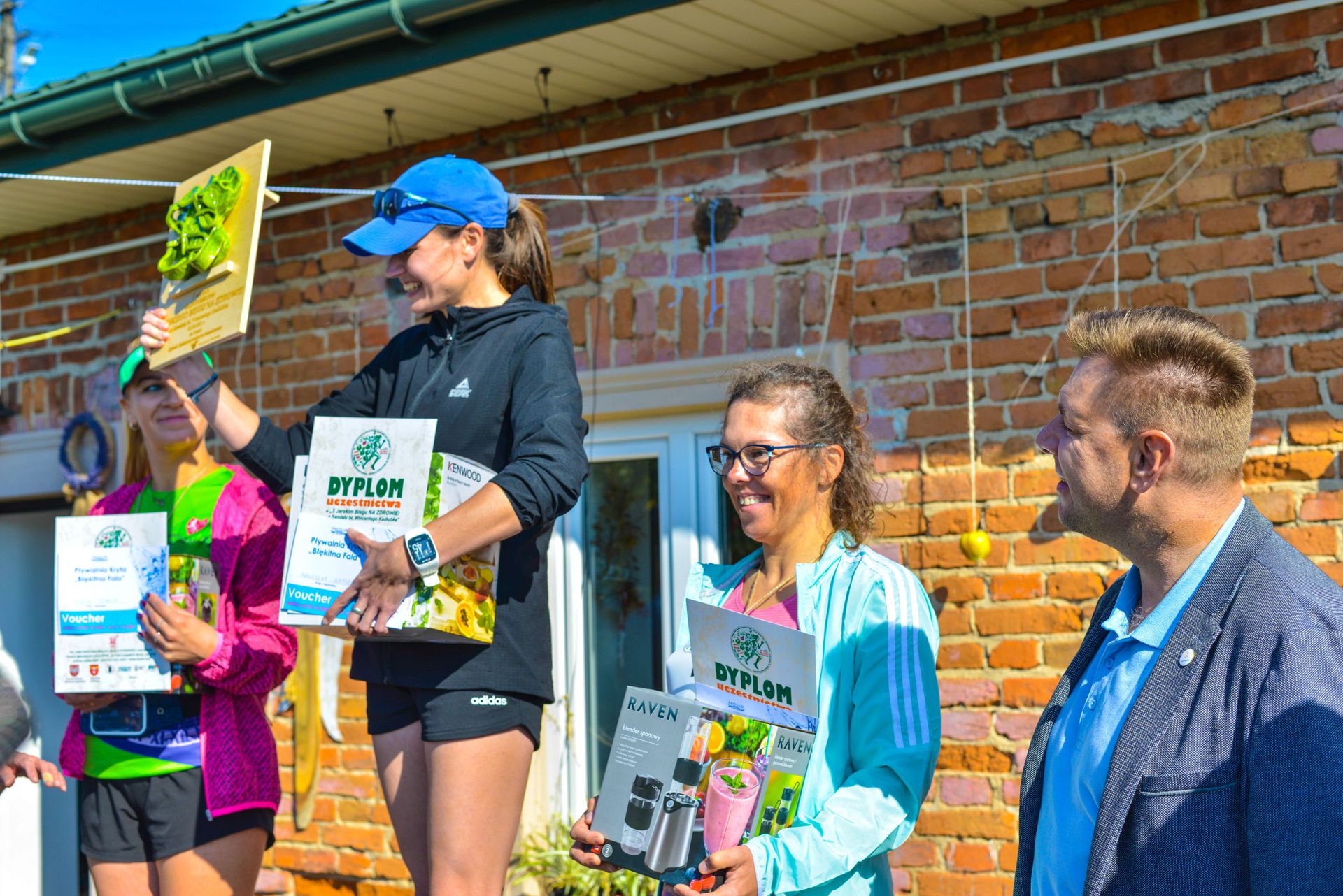Zwycięzca biegu otrzymał „Sandały Mistrza” – rzeźby ceramiczne damskie i męskie jako I-wsze nagrody. Gratulacje biegaczom złożyli: Marcin Marzec Burmistrz Sandomierza, Witold Surowiec, Wójt Gminy Samborzec i jego zastępczyni Ewa Drzazga.