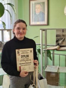 Z radością i dumą informujemy, że Barbara Cichoń, reprezentująca Szkolny Wolontariat V Liceum Ogólnokształcącego w Mielcu zajęła I miejsce w Powiatowym etapie VI edycji Konkursu Zawsze Wierni, przywracającego pamięć o Żołnierzach Wyklętych Niezłomnych, organizowanym przez I LO w Mielcu. Dało to nominację do etapu wojewódzkiego, w którym Barbara Cichoń zajęła III miejsce. Godnie prezentowały też nasz Wolontariat na etapie powiatowym recytatorki: Magda Nowak i Oliwia Dąbrowska. Do konkursu uczennice przygotowywały się pod kierunkiem opiekuna Wolontariatu – dr Jolanty Witek. Gratulujemy i życzymy kolejnych sukcesów! W tym roku eliminacje odbywały się w formie zdalnej.