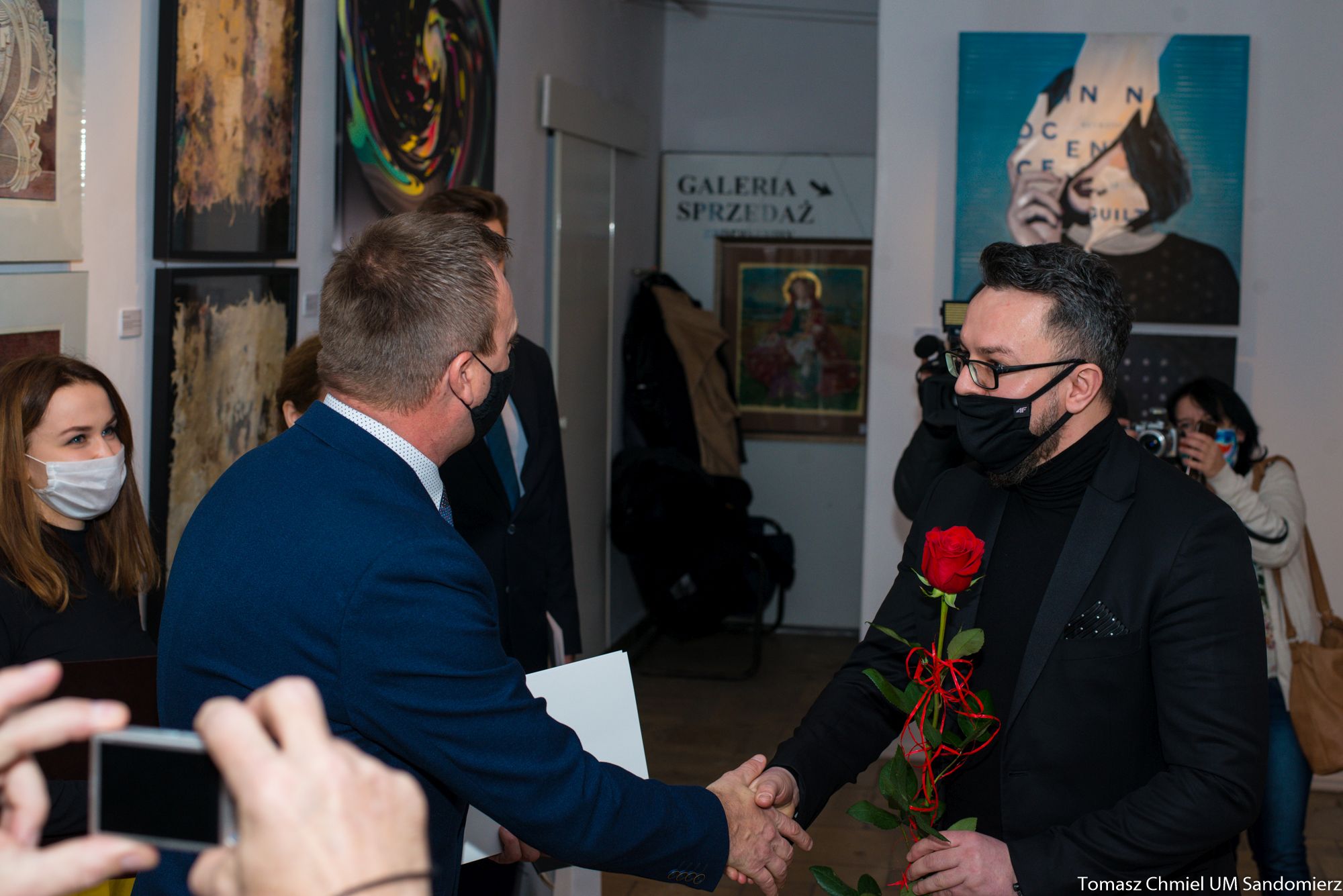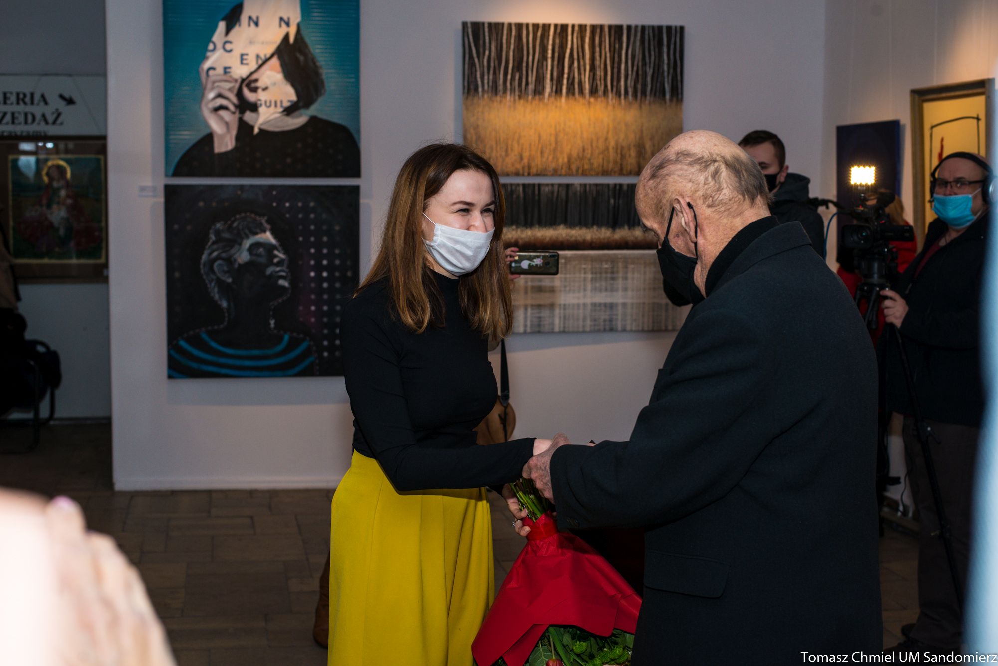I Nagrodę Starosty Powiatu Sandomierskiego otrzymał Artur Bartkiewicz za kompozycję zatytułowaną „Dziewczyna z gazetą”. Utrzymana w monochromatycznej palecie barw malarska kompozycja jest mocno osadzona w realiach codzienności i może być artystycznym komentarzem do wydarzeń roku 2020. Laureatem II Nagrody Burmistrza Sandomierza jest Andrzej Karwat, którego prace z cyklu „Obcy bogowie – Trochę nieba” oraz „Obcy bogowie – Trochę piekła” są doskonałym warsztatowo połączeniem cynkografii i kolografii z akwaftortą. Odważnie budowane kompozycje w warstwie znaczeniowej znajdujące odniesienie do rzeczywistości z jasno określonym metaforycznym przesłaniem, pełne są napięć i ukrytych znaczeń. III Nagrodę Marszałka Województwa Świętokrzyskiego uzyskał Marek Pokutycki za rysunek ołówkiem, pt. „Przyjaciele Dorotki”, surrealistyczną kompozycję z pogranicza jawy i snu, w której szarości grafitowego rysika ujawniają zagadkowe i tajemnicze kształty wyłaniające się z nieokreślonej przestrzeni. W roku bieżącym Jury przyznało trzy równorzędne wyróżnienia. Laureatem pierwszego z nich Wyróżnienia Prezydenta Stalowej Woli jest Szczepan Siudak, autor rzeźbiarskiej kompozycji pt. „Piruet”, w której artysta przedstawił zagadnienie relacji pionu z poziomem, dynamiki ruchu i urody kobiecego ciała. Wyróżnienie Biura Wystaw Artystycznych w Kielcach otrzymał Janusz Baran za pracę graficzną zatytułowaną „Obrazy traumatyczne – Pandemia I”, sugestywną i emocjonalną, bezpośrednio odnoszącą się do „czasów zarazy” roku 2020 naznaczonego pandemią i cierpieniem. Stanisław Świeca jest laureatem Wyróżnienia Biura Wystaw Artystycznych w Sandomierzu, które otrzymał za zestaw świetnych gipsorytów, pt.: “Pocałunek”, “Przybysz II” i “Zjawa II”. Artysta drobną kreską z mistrzowską precyzją kreuje formy doskonałe fantastycznych światów i tętniących życiem antropomorficznych kształtów.