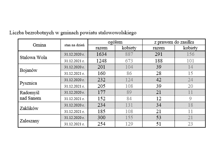 Członkowie Powiatowej Rady Rynku Pracy zapoznali się m.in. z aktualną sytuacją na rynku pracy, którą przedstawiła dyrektor Powiatowego Urzędu Pracy w Stalowej Woli Zofia Zielińska – Nędzyńska. Według danych na koniec listopada 2021 r. stopa bezrobocia w powiecie stalowowolskim wyniosła 5 % (w województwie podkarpackim 8,1 %, w kraju 5,4 %). W czwartym kwartale ubiegłego roku w Urzędzie Pracy dostępnych było 270 ofert, najwięcej z branży wytwórczej, odlewniczej i budowlanej.
