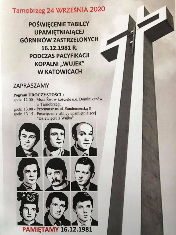 godz. 13.15 – Poświęcenie tablicy upamiętniającej „Dziewięciu z Wujka”.