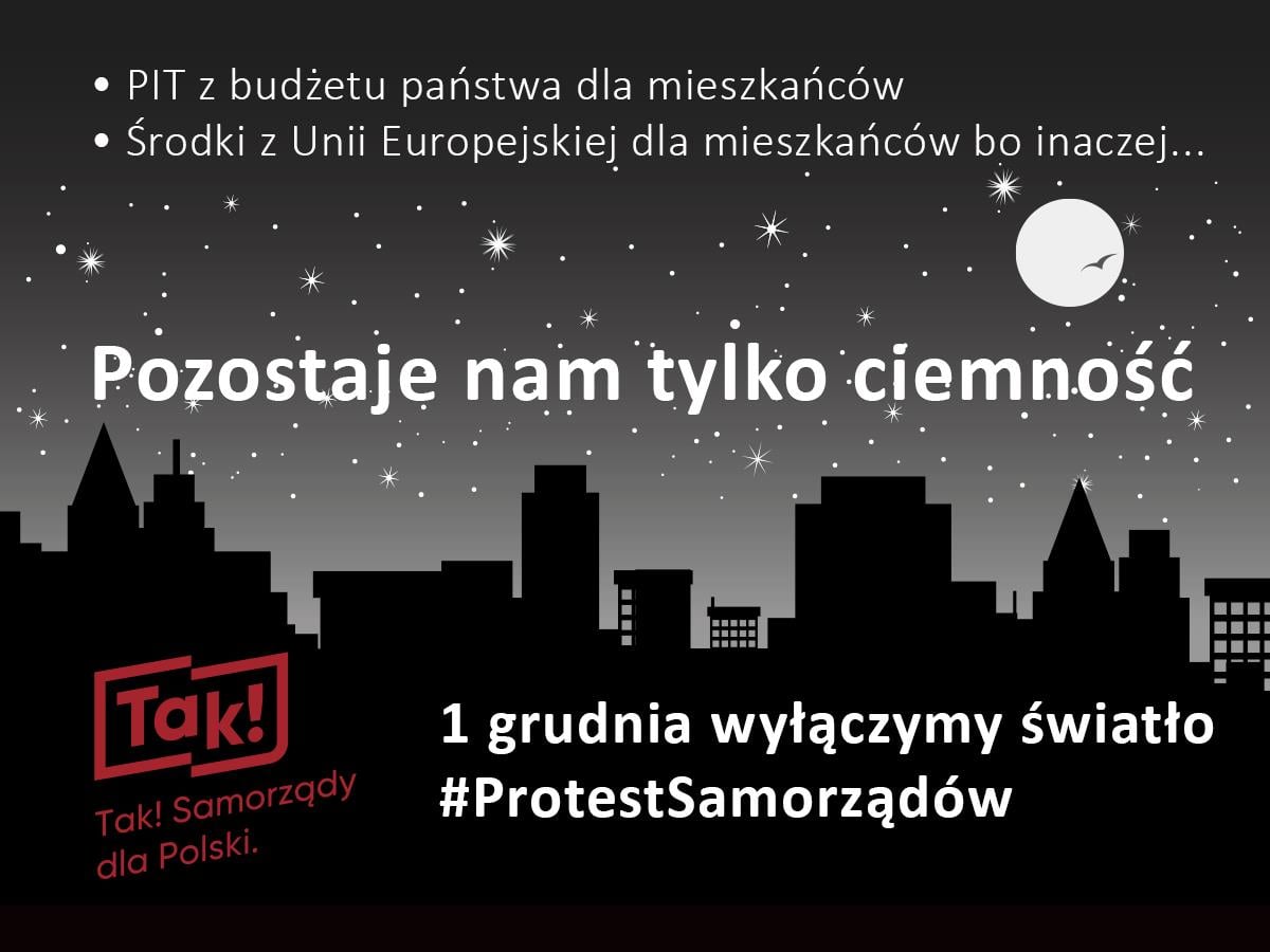 Dziś (1 grudnia) o godzinie 17:00 na godzinę zgaśnie symbolicznie oświetlenie budynków użyteczności publicznej na Rynku Starego Miasta. Ma to zwrócić uwagę na aktualną sytuację samorządów, którą zmienić może ustawa uchwalona 28 października br., przez Sejm Rzeczypospolitej Polskiej. Poprzez ograniczenie wpływu z podatku PIT (dotychczas na poziomie 38,18%) samorząd straci stały dochód do corocznego budżetu z tego źródła. Ustawa jest obecnie procedowana w Senacie i niebawem ponownie wróci do Sejmu. Dlatego jest to dobry moment, by pokazać stanowisko samorządu w tym obszarze.