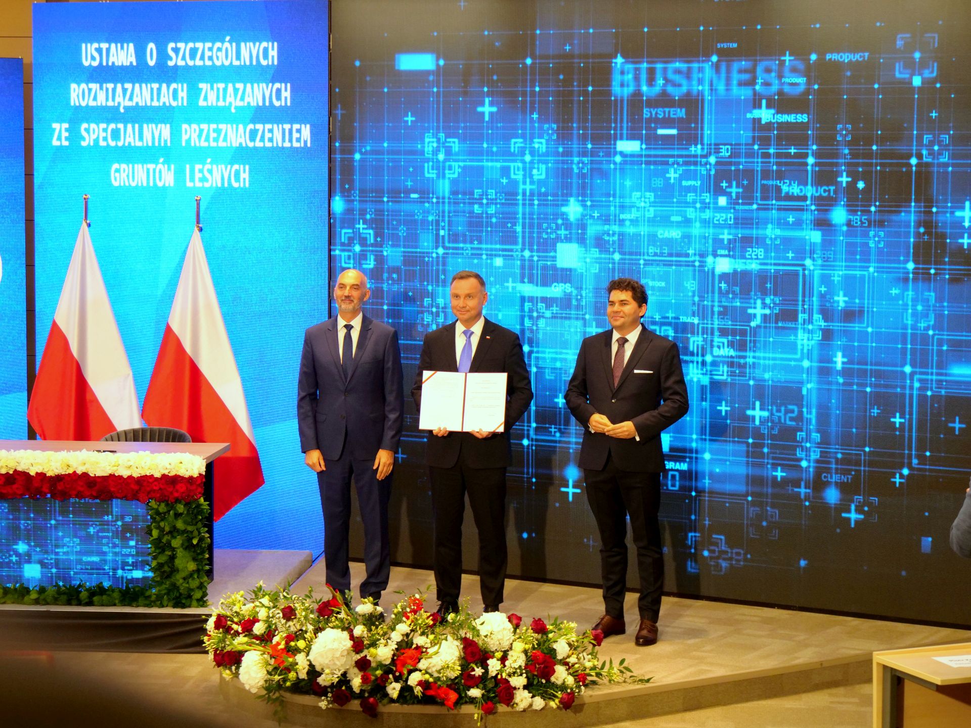 – Lasy Państwowe nie powinny być stratne na całym tym procesie. Wręcz przeciwnie – być może będzie tak, że będą miały grunty znacznie bardziej sprzyjające rozwojowi gospodarki leśnej niż to, czym dysponowały na tych obszarach do tej pory. A przede wszystkim – co dla mnie najważniejsze i co ma właśnie fundamentalne znaczenie z punktu widzenia proporcjonalności całego tego rozwiązania – ludzie będą mieli pracę w obydwu miejscach. To w perspektywie kilkanaście tysięcy miejsc pracy. Bardzo często z całą pewnością w bardzo nowoczesnych zakładach stanowiących w tej chwili absolutną awangardę, jeżeli chodzi o przemysł światowy – podkreślił Prezydent Polski.