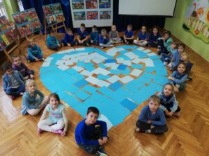 – „dzień niebieski” w przedszkolu pod hasłem – „Kiedy śmieje się dziecko, śmieje się cały świat” J. Korczak