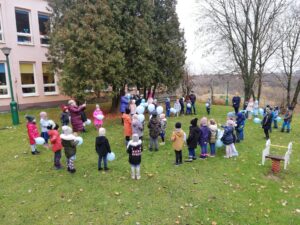 – przystrojenie sali gimnastycznej oraz wejścia do budynku przedszkola w elementy koloru niebieskiego