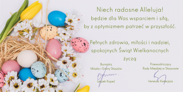 Życzenia Wielkanocne od burmistrza Staszowa oraz Przewodniczącego Rady Miejskiej.