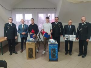 Podczas zebrania w Wielowsi uroczyście doceniono laureatów Ogólnopolskiego Turnieju Wiedzy Pożarniczej „Młodzież zapobiega pożarom” – finalistów eliminacji centralnych edycji 2021. Nasze miasto i całe województwo reprezentowali uczniowie Liceum Ogólnokształcącego im. M. Kopernika w Tarnobrzegu – Adrian Kozioł i Marcel Chojnacki, a ich opiekunem, pod którego okiem przygotowywali się do konkursu, był nauczyciel Robert Miczko. Gratulujemy!