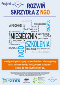 Projekt RZOWIŃ SKRZYDŁA Z NGO jest realizowany przez Stowarzyszenie ESTEKA i jest finansowany przez Narodowy Instytut Wolności – Centrum Rozwoju Społeczeństwa Obywatelskiego ze środków Programu Rozwoju Organizacji Obywatelskich na lata 2018 – 2030
