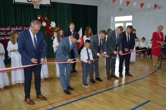 Podczas spotkania Wójt Michał Deptuła przekazał klucz do sali dyrektor szkoły, Józefie Lebidzie, a ks. Stanisław Kaczka dokonał poświęcenia krzyża, który zawisł nad wejściem do sali. Wydarzenie zwieńczyły występy artystyczne przygotowane przez uczniów placówki.