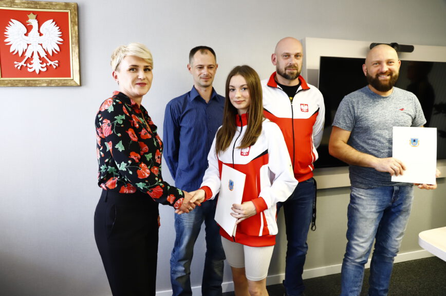 Zastępca Prezydenta Miasta Mielca Adriana Miłoś spotkała się z medalistami Mistrzostw Europy i Mistrzostw Polski w Jiu Jitsu reprezentującymi klub Iron Dragon MMA Mielec.