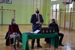Burmistrz wręczył okolicznościowe podziękowania i upominki, przekazał także życzenia od Marszałka Województwa Świętokrzyskiego Andrzeja Bętkowskiego. Włodarz podzielił się informacjami na temat ostatnich i planowanych w najbliższym czasie inwestycji. Podkreślił, że urząd miasta, pomimo pandemii jest cały czas otwarty dla mieszkańców, z zachowaniem rygorów sanitarnych. Po krótkiej dyskusji na temat funduszu sołeckiego i pracy sołtysa podczas pandemii, uczestnicy spotkania zwiedzili pozostałe, wyremontowane pomieszczenia szkolne.