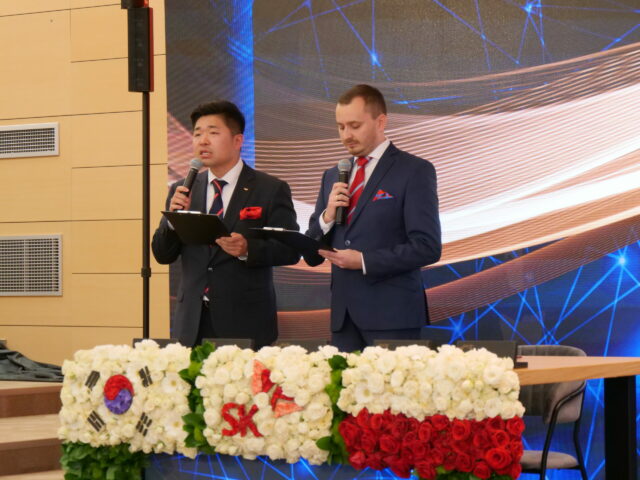 – Chcę wyrazić radość w imieniu mieszańców, że te „skrzydła szczęścia” reprezentowane przez korporację SK lądują dzisiaj na ziemi stalowowolskiej. Te „skrzydła szczęścia” przynoszą wiadomość o historycznej inwestycji, która odmieni gospodarczo nasze miasto, nasz region i całą Polskę. Dziękuję za wielką szansę, przed którą stanęła Stalowa Wola. Szansę na zatrudnienie 500 osób. Ta szansa dodaje nam energii. Jestem przekonany, patrząc na dynamiczny rozwój Republiki Korei, że oprócz współpracy gospodarczej, podejmiemy wspólne działania kulturalne, społeczne i edukacyjne, ponieważ chcemy budować gospodarkę opartą na wiedzy i najlepszych doświadczeniach – powiedział prezydent Stalowej Woli Lucjusz Nadbereżny.