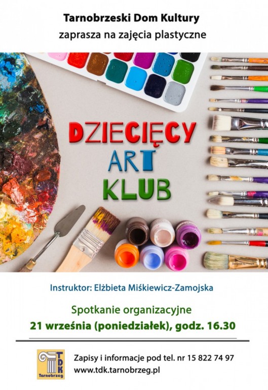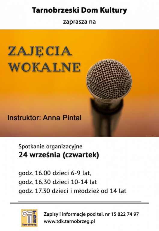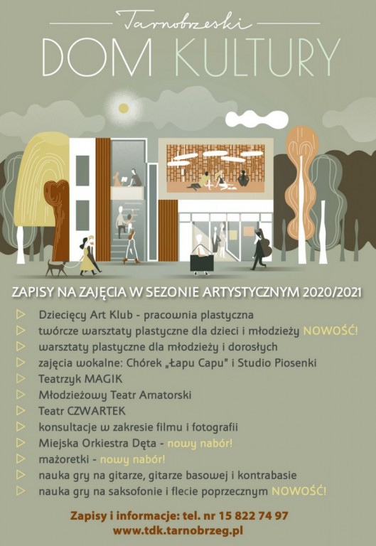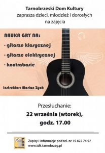 Pierwsze zajęcia startują końcem września. Wszystkie informacje można znaleźć na stronie Tarnobrzeskiego Domu Kultury: www.tdk.tarnobrzeg.pl, a także w Dziale Ruchu Amatorskiego, tel. 15 822 74 97.