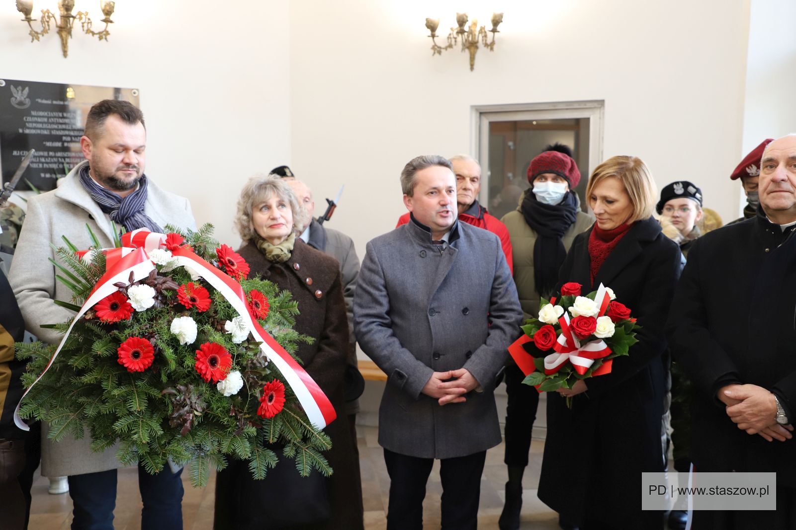 Dowód swojej pamięci i szacunku oddali między innymi Leszek Kopeć – burmistrz miasta i gminy Staszów, dr Ewa Kondek – zastępca burmistrza, Leszek Guzal – wicestarosta staszowski, Krystyna Semrau – Członek Zarządu Powiatu Staszowskiego, ks. kan. Szczepan Janas – proboszcz parafii pw. św. Bartłomieja w Staszowie, Anna Karasińska – dyrektor Liceum Ogólnokształcącego im. ks. kard. S. Wyszyńskiego wraz z Anicetą Wójcik – wicedyrektorem szkoły i uczniami klasy mundurowej staszowskiego ogólniaka, st. insp. Edward Drózd i insp. Marek Morawski z Jednostki Strzeleckiej 2151 Staszów im. 2 Pułku Piechoty Legionów ZS „Strzelec”, a także przedstawiciele Hufca ZHP w Staszowie, NSZZ „Solidarność”, organizacji kombatanckich oraz mieszkańcy miasta.