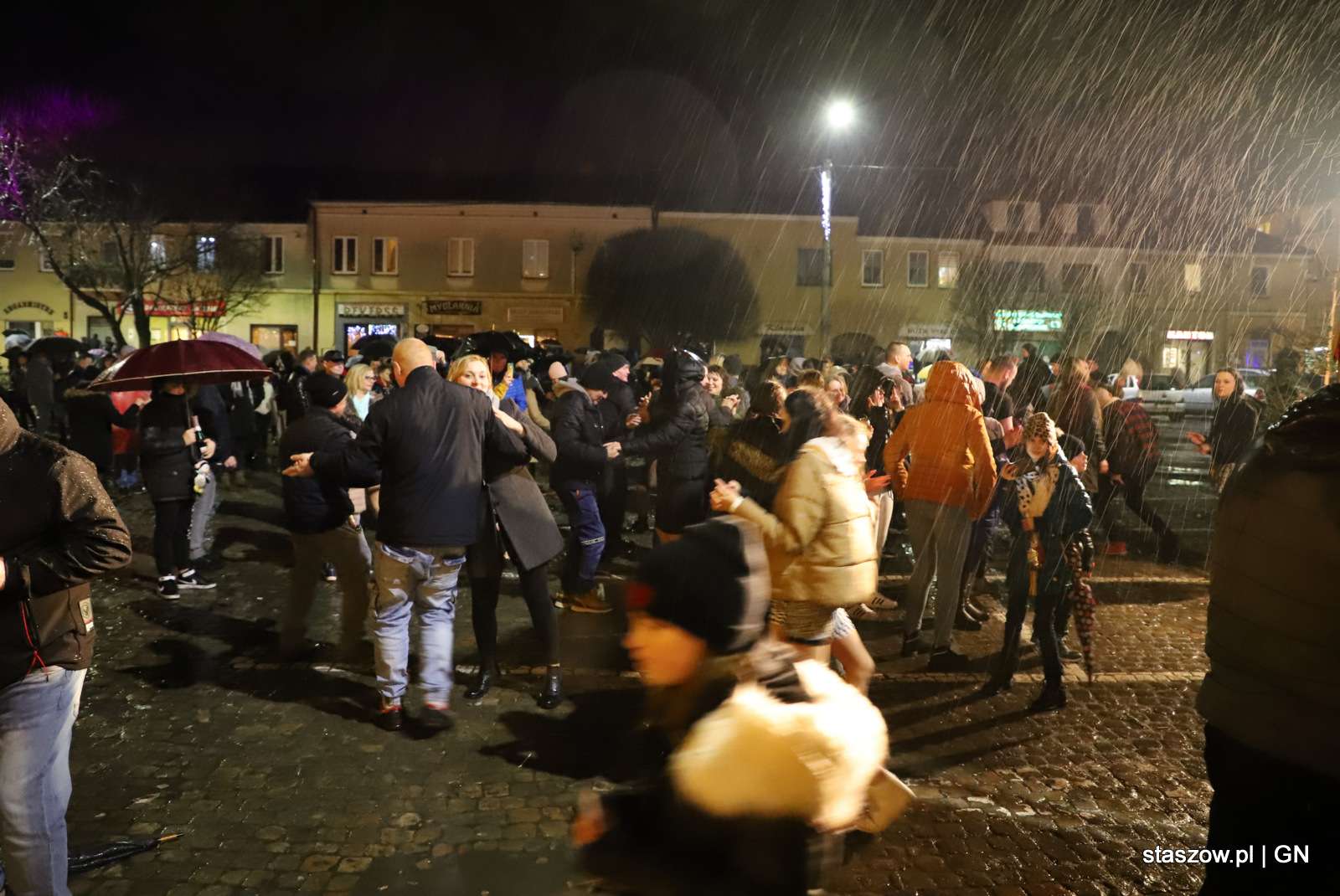 Sylwestrowe spotkanie na staszowskim Rynku rozpoczęło się koncertem muzyki mechanicznej. Tuż po nim zabawę taneczną poprowadził zespół Banda BAND. Chętnych do wspólnych tańców nie brakowało. Chwilę przed północą pierwsze życzenia wszystkim zebranym przekazał Leszek Kopeć – burmistrz miasta i gminy Staszów wraz ze swoim zastępcą, dr Ewą Kondek.