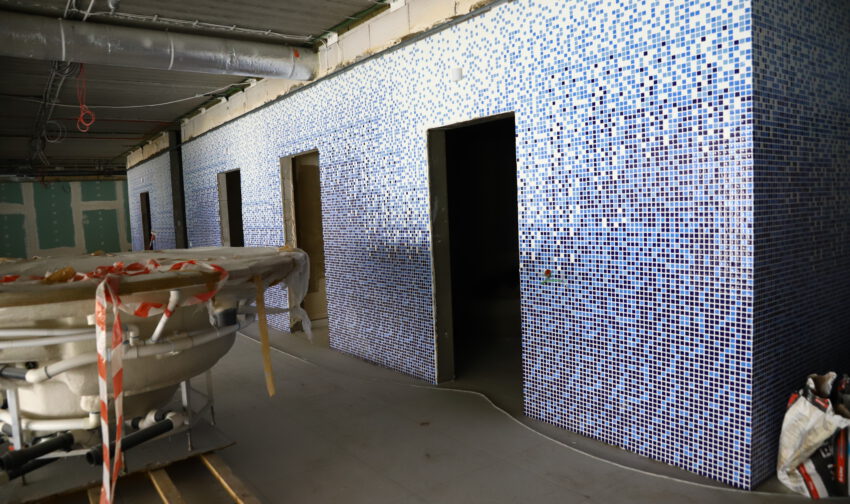 W toku robót są także prace branżowe sanitarne wewnętrzne – w tym montaż instalacji grzewczej, wodno – kanalizacyjnej i instalacji wentylacji. W najbliższych dniach planowane są rozruchy central wentylacyjnych. W części basenowej wykonawca jest w trakcie instalowania niecek stalowych basenów ze stali nierdzewnej wraz z wannami do hydromasażu.
