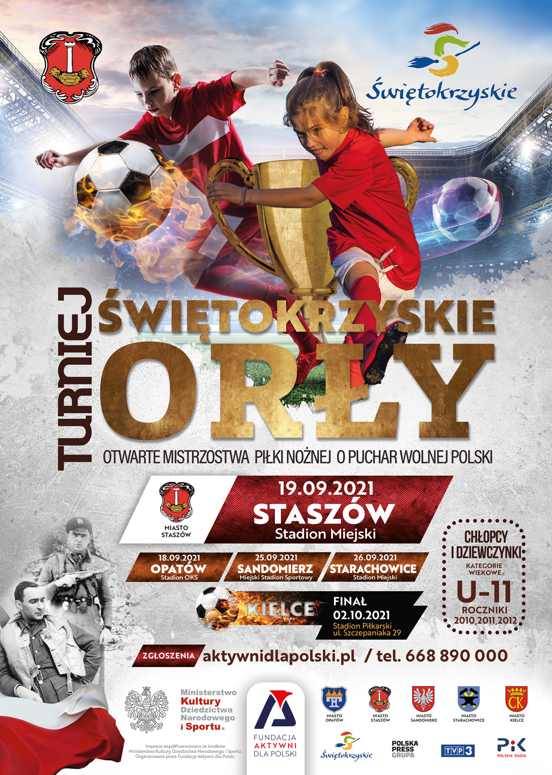 W niedzielę, 19 września, o godzinie 10.00 na Stadionie Miejskim w Staszowie odbędą się „Otwarte Mistrzostwa Piłki Nożnej o Puchar Wolnej Polski – Świętokrzyskie Orły” z udziałem zawodników rocznika 2011 i młodszych (dziewczynki i chłopcy). Zwycięzcy staszowskiego turnieju będą grać o cenne nagrody w turnieju finałowym w Kielcach. Nikt tego dnia nie będzie się nudził. Turniej zorganizowany jest na najwyższym poziomie organizacyjnym i sportowym ze znakomitą oprawą oraz masą atrakcji i niespodzianek.