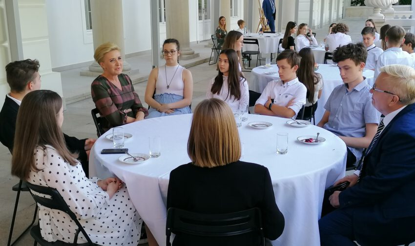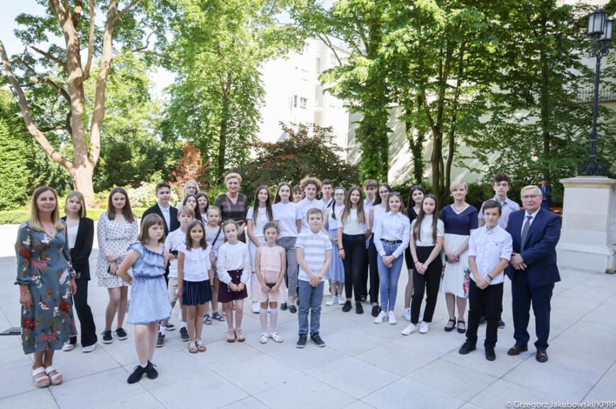W piątek 17 czerwca grupa uczniów ze Szkoły Podstawowej nr 9 w Mielcu gościła w Pałacu Prezydenckim na zaproszenie Małżonki Prezydenta RP Agaty Kornhauser – Dudy. Wizyta w Pałacu Prezydenckim była efektem dwóch spotkań uczniów SP 9 z Małżonką Prezydenta w 2020 roku i zdalnie w 2021 roku.