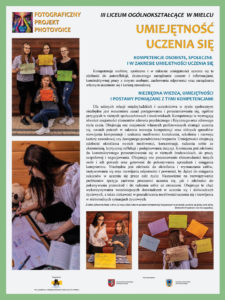 Photovoice to metoda fotografii partycypacyjnej, która została zastosowana jako narzędzie dydaktyczne pozwalające przybliżyć dany temat oraz zachęcić do dyskusji i przemyśleń. Celem projektu było utrwalenie na fotografii charakterystyki wylosowanej kompetencji kluczowej pożądanej na rynku pracy.