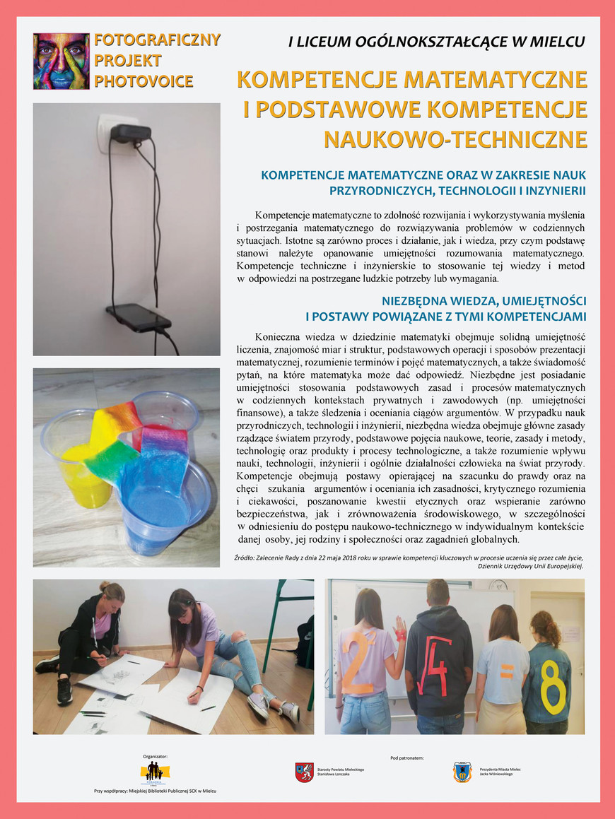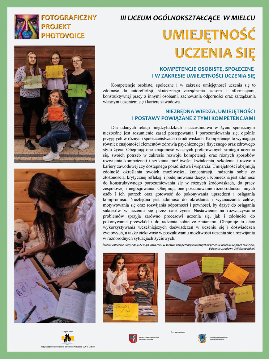 Photovoice to metoda fotografii partycypacyjnej, która została zastosowana jako narzędzie dydaktyczne pozwalające przybliżyć dany temat oraz zachęcić do dyskusji i przemyśleń. Celem projektu było utrwalenie na fotografii charakterystyki wylosowanej kompetencji kluczowej pożądanej na rynku pracy.