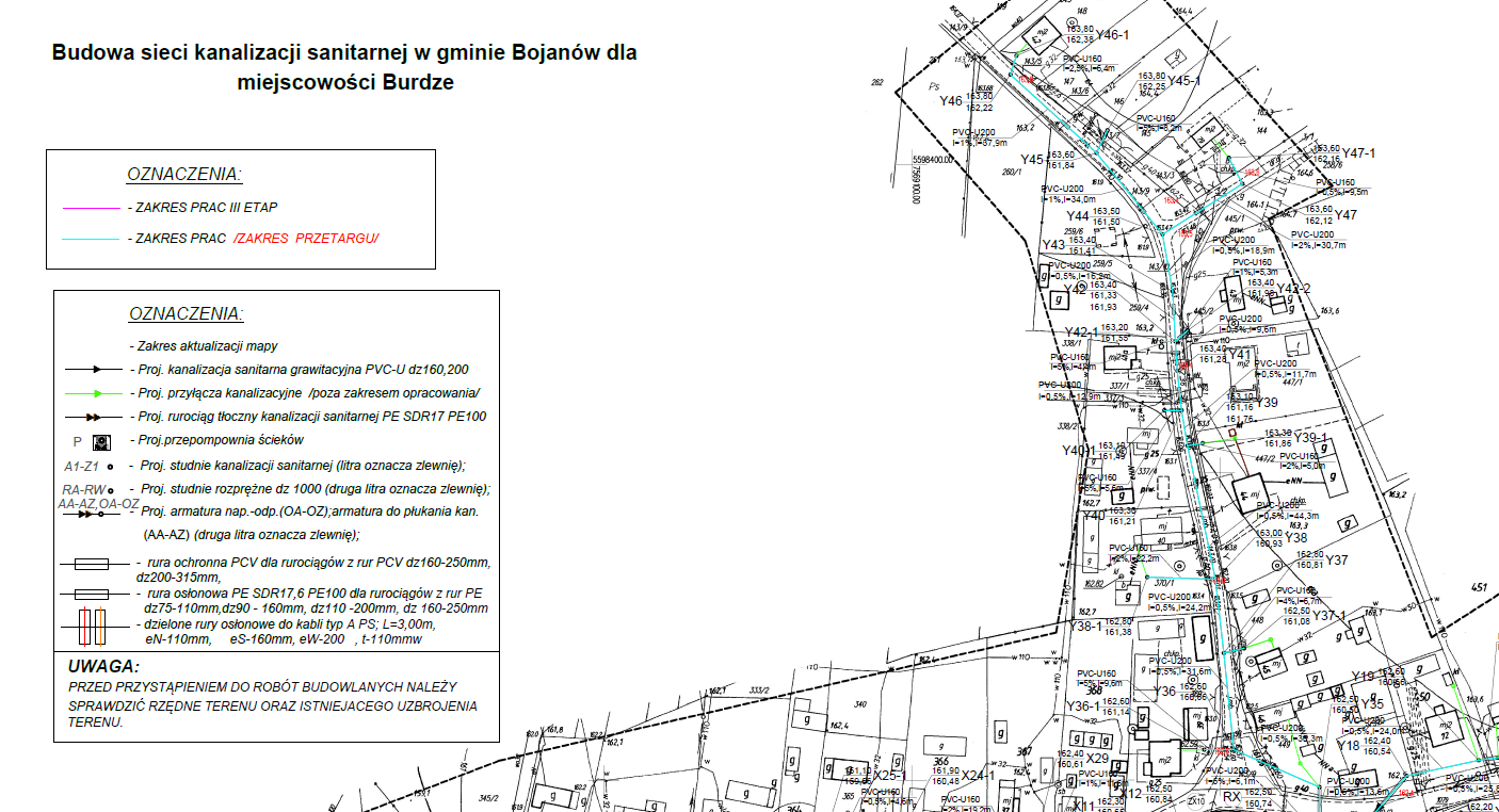 12 października 2020 roku podpisana została umowa na budowę kolejnego etapu sieci kanalizacji sanitarnej na terenie gminy Bojanów dla miejscowości Burdze. Wykonawcą zadania jest konsorcjum firm: Aquatech Sp. z o.o. z Niwisk oraz Usługi Instalacyjno-Budowlane Marcin Deptuch z Woli Rusinowskiej. Umowa opiewa na kwotę niespełna 1,4 mln zł. Zakres robót budowlanych obejmuje wykonanie ok. 5 km rurociągu grawitacyjnego i tłocznego oraz 2 przepompownie ścieków. Przewidywany termin realizacji przedsięwzięcia to 30.06.2022 r, a środki na jego realizację Gmina Bojanów pozyskała z Wojewódzkiego Funduszu Ochrony Środowiska i Gospodarki Wodnej w Rzeszowie w ramach pożyczki z możliwością umorzenia do 50% kwoty pożyczki.