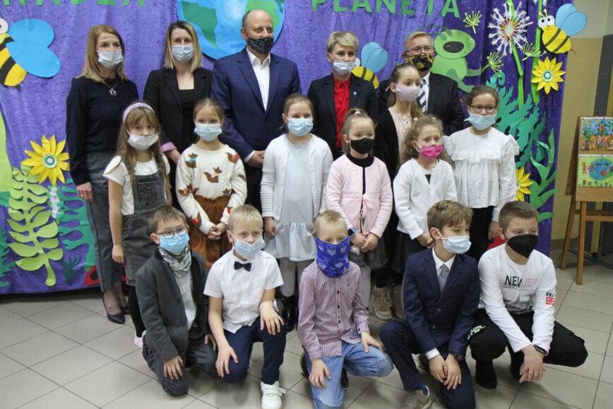 W dniu 4 listopada 2021 r. o godz. 10.00 w Szkole Podstawowej nr 9 z Oddziałami Mistrzostwa Sportowego w Mielcu odbyło się uroczyste wręczenie nagród w Międzyszkolnym Plastycznym Konkursie Ekologicznym Klas I-III pod hasłem „Ziemia – nasza planeta”. Uroczystość zaszczycili swoją obecnością: Drugi Zastepca Prezydenta Miasta Mielca – Adriana Miłoś, Naczelnik Wydziału Edukacji Urzędu Miejskiego w Mielcu – Mirosław Kapinos, Dyrektor SP nr 9 z Oddziałami Mistrzostwa Sportowego w Mielcu – Jacek Mleczko, Wicedyrektor SP nr 9 z Oddziałami Mistrzostwa Sportowego w Mielcu – Agnieszka Torba oraz laureaci konkursu wraz z opiekunami.