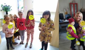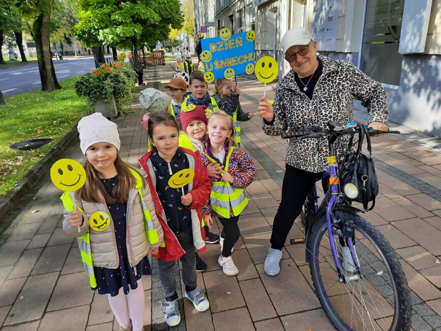 Przedszkolaki wypowiadały hasło: „Mały, czy duży niech zawsze pamięta, aby jego buzia była zawsze uśmiechnięta” sprawiając radość przechodniom, którzy chętnie przystawali i odpowiadali uśmiechem na taką zachętę…