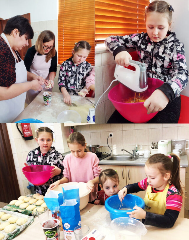 Bazując na tradycyjnym przepisie i najlepszych składnikach, Uczestnicy, pod czujnym okiem naszej wspaniałej Instruktorki, mieli okazję przygotować i wysmażyć prawdziwe domowe pączki z marmoladą owocową. Oczywiście zostały one osypane bielutkim cukrem pudrem.