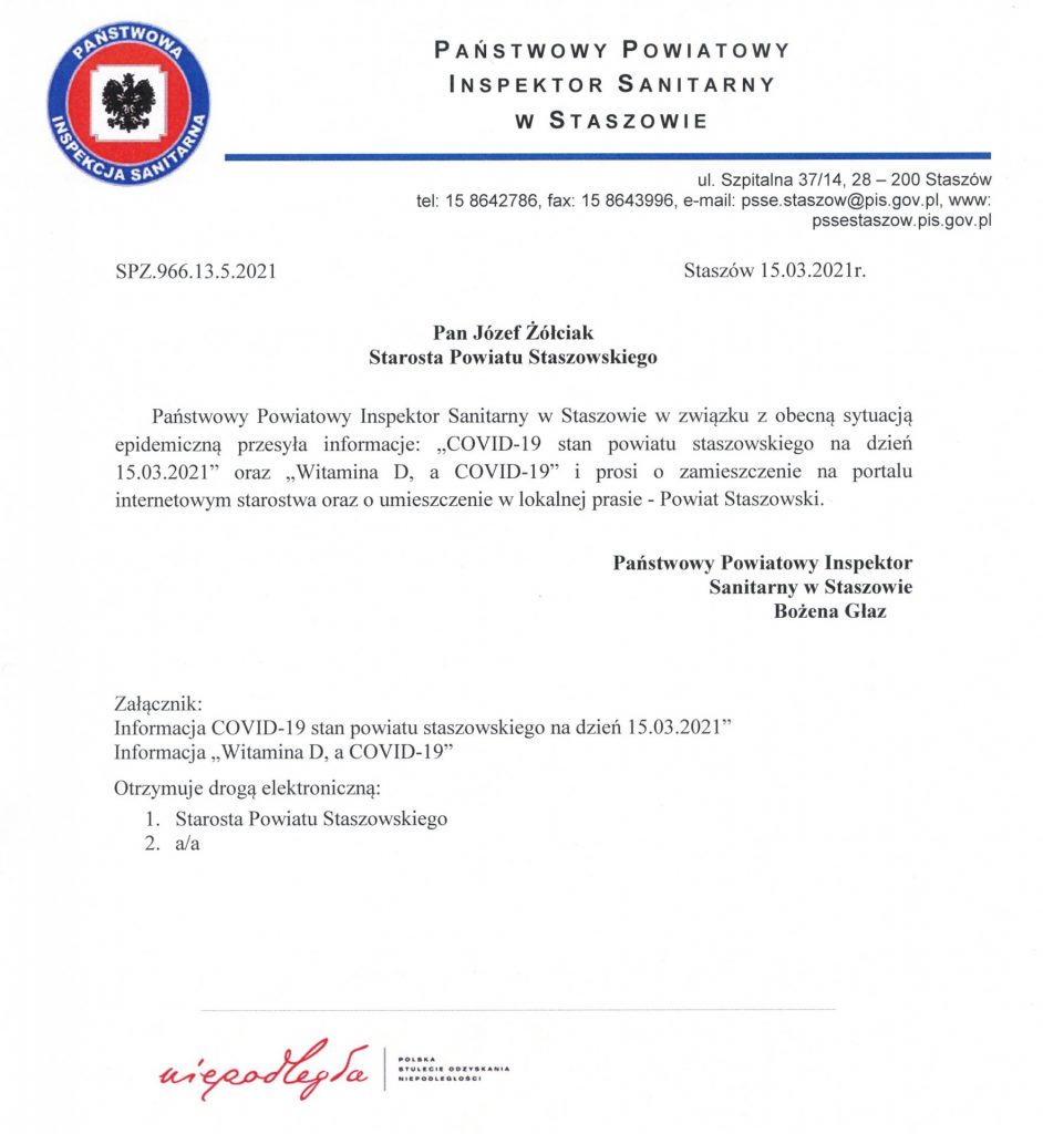 W związku z powyższym Zespół do Spraw Suplementów Diety na posiedzeniu w styczniu 2021 roku, wydał opinię dotyczącą suplementacji witaminy D dla grup wiekowych w Polsce. W grupie osób zdrowych powyżej 75 roku życia suplementację należy prowadzić przez cały rok w dawce 2000-4000 IU/dobę z zależności od masy ciała i podaży witaminy D w diecie. U seniorów w wieku 65-75 lat oraz u osób z ciemną karnacja skóry, dawka ta powinna wynosić przez cały rok 800-2000 IU/dobę, również z uwzględnieniem masy ciała oraz ilość spożywanych produktów zawierających witaminę D. Natomiast osoby w wieku 19-65 lat, spełniające warunki przebywania na słońcu (opisano powyżej), w okresie lata ( maj – wrzesień) nie wymagają suplementacji witaminy D. W przypadku, gdy warunki przebywania na słońcu nie są spełnione, zaleca się dostarczanie tym osobom dawki 8000-2000 IU/dobę. Przy stosowaniu suplementacji witaminy D należy pamiętać, że organizm pozyskuje ją również z pożywienia. Spośród żywności najlepszym źródłem witaminy D są tłuste ryby, m.in. popularne w Polsce śledź, łosoś, makrela. Kolejnymi produktami, dostarczającymi witaminy D są jaja oraz margaryny i tzw. miksy tłuszczowe, do których w Polsce obowiązkowo dodaje się witaminę D.\
