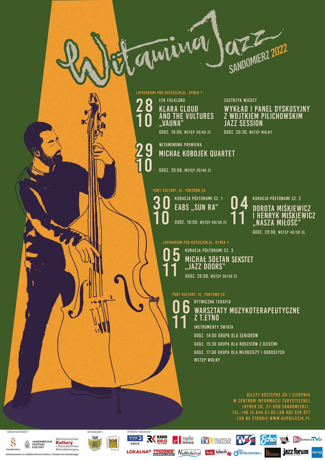 Wielkimi krokami zbliża się festiwal Witamina Jazz 2022. Program festiwalu zawiera w sobie różne barwy muzyki jazzowej i okołojazzowej oraz szereg ciekawych wydarzeń towarzyszących – wykład i panel dyskusyjny z Wojciechem Pilichowskim, JAZZ SESSION oraz warsztaty muzykoterapeutyczne z T.ETNO. Znakiem rozpoznawczym naszego wydarzenia jest promowanie zdrowotnego wpływu muzyki jazzowej na organizm – warto wziąć udział i doświadczyć niezwykłej kuracji półtonami!