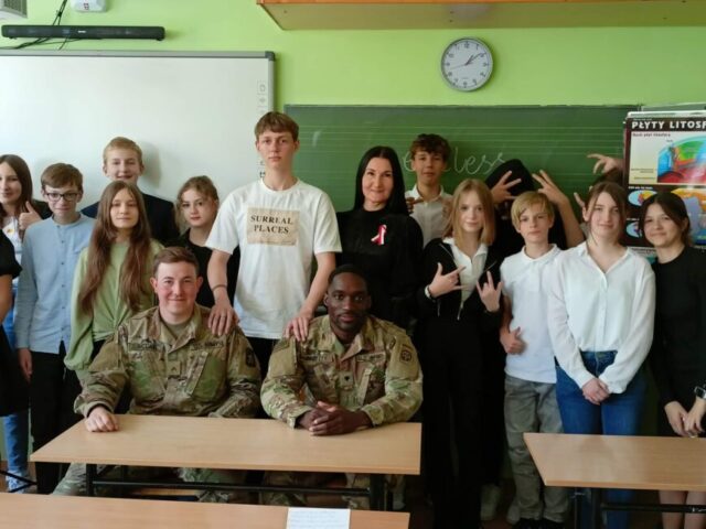 Nauczyciele i uczniowie serdecznie przyjęli niecodziennych gości. Po apelu zaprosili ich na poczęstunek, a następnie do sal na spotkanie z uczniami starszych klas. Był to czas swobodnych rozmów, podczas których uczniowie mogli zapytać o interesujące ich sprawy związane ze służbą wojskową, a tym samym poszerzyć wiedzę i udoskonalić komunikację w języku angielskim. Spotkanie, które sprawiło uczniom wiele satysfakcji zostało utrwalone na fotografiach. Szkoła otrzymała od miłych gości certyfikat.