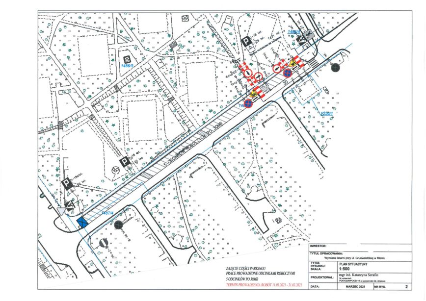 W związku z planowaną w najbliższych dniach, wymianą latarni oświetlenia ulicznego przy ul. Grunwaldzkiej, zwracamy się do mieszkańców o zachowanie ostrożności i respektowanie wprowadzonej czasowej organizacji ruchu – w tym nieparkowanie samochodów w miejscach, gdzie będą prowadzone prace.