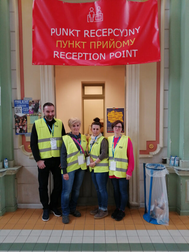 Dworce i inne centra przesiadkowe to miejsca w których potrzebna jest pomoc wolontariuszy. Na apel Marszałka Województwa o pomoc przy obsłudze punktu recepcyjnego, znajdującego się na dworcu PKP w Przemyślu, odpowiedział wójt Jan Pyrkosz kierując do wolontariatu czteroosobową delegację pracowników z Urzędu Gminy w osobach: Ewa Marynowska, Małgorzata Kuciapa, Joanna Dudzińska oraz Jakub Dybek.