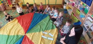 Podczas zajęć nowy język towarzyszy dzieciom nie tylko w czasie nauki piosenek i wierszyków, ale również przy zwykłych przedszkolnych czynnościach. Wszystkie polecenia, pytania i odpowiedzi przekazywane są w dwóch językach. Dzięki temu najmłodsi bardzo szybko uczą się zwrotów w języku angielskim. Już zauważone zostały pierwsze efekty innowacji, która zaplanowana jest na dwa lata przedszkolne. Wesołe i kolorowe lekcje języka angielskiego prowadzi Joanna Adydan.