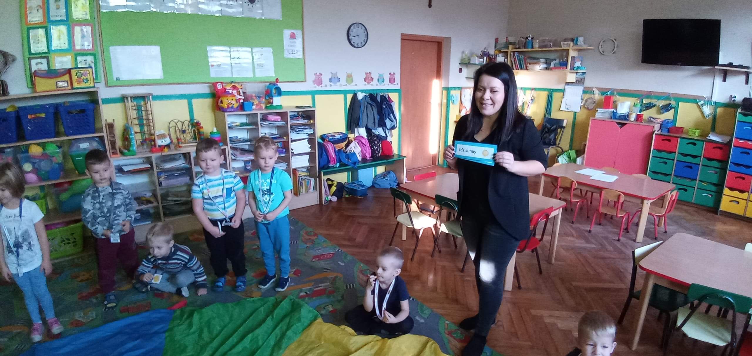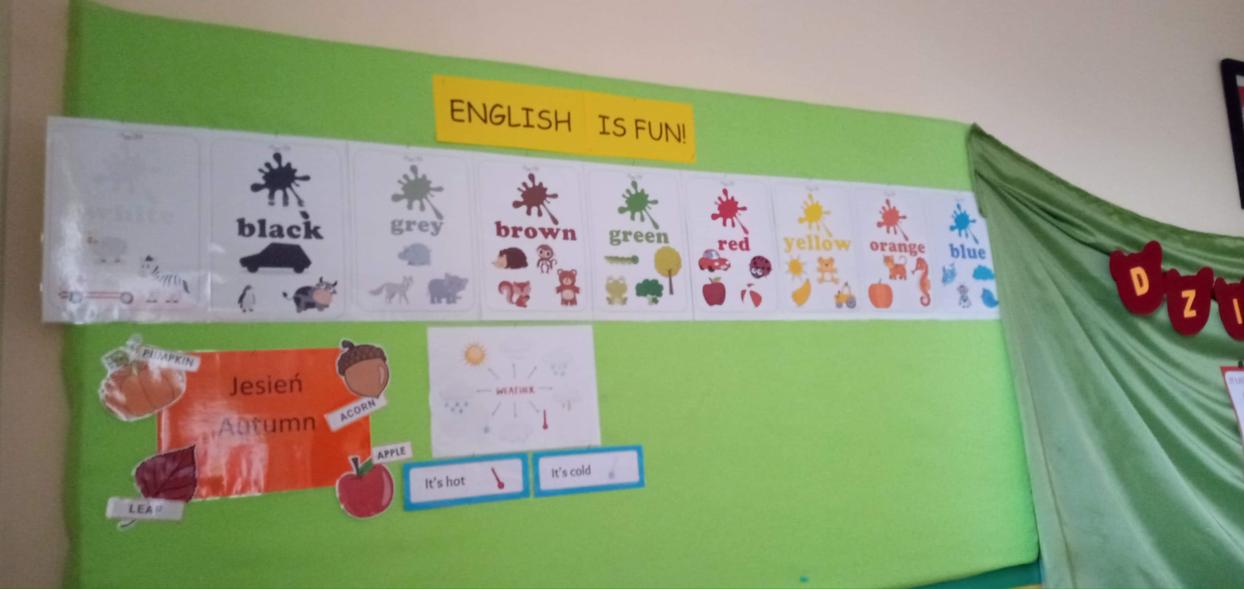 Podczas zajęć nowy język towarzyszy dzieciom nie tylko w czasie nauki piosenek i wierszyków, ale również przy zwykłych przedszkolnych czynnościach. Wszystkie polecenia, pytania i odpowiedzi przekazywane są w dwóch językach. Dzięki temu najmłodsi bardzo szybko uczą się zwrotów w języku angielskim. Już zauważone zostały pierwsze efekty innowacji, która zaplanowana jest na dwa lata przedszkolne. Wesołe i kolorowe lekcje języka angielskiego prowadzi Joanna Adydan.