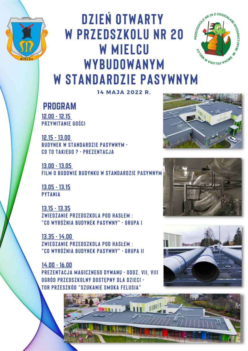 Zapraszamy wszystkich zainteresowanych, Małych i Dużych w dniu 14 maja br. od godz 12:00 do 16:00. W programie przewidziano prezentacje Projektanta Przedszkola – Architektura Pasywna Pyszczek i Stelmach Sp. J. , film o budowie pasywnej , zwiedzanie Przedszkola, a o szczegóły budowy w standardzie pasywnym będzie można dopytać również wykonawców PM nr 20 przedstawicieli firmy ARKADA Sp z o.o. oraz ZETES Sp. z o.o. Natomiast dla naszych Milusińskich przewidziano zajęcia i animacyjne, które poprowadzą pracownicy przedszkola.
