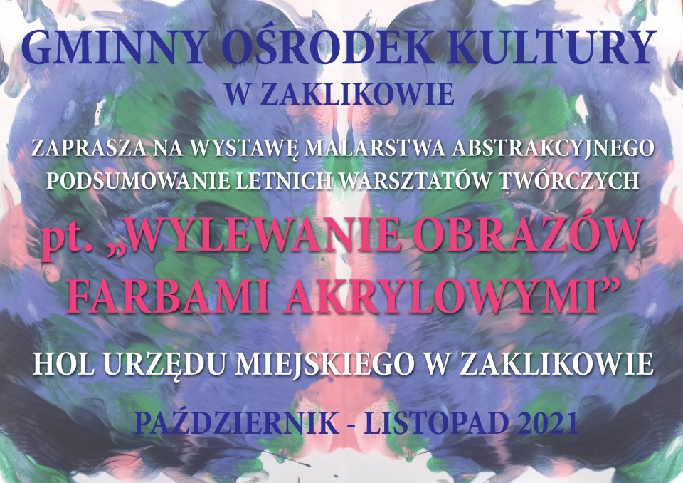 Strona główna POWIATY Zapraszamy na wystawę malarstwa pt. „Wylewanie obrazów farbami akrylowymi”
