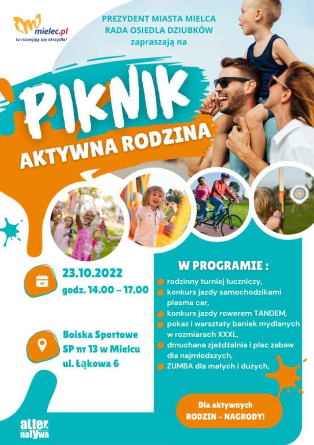 Prezydent Miasta Mielca Jacek Wiśniewski i Rada Osiedla Dziubków zapraszają całe rodziny do udziału w jesiennym pikniku pt: AKTYWNA RODZINA