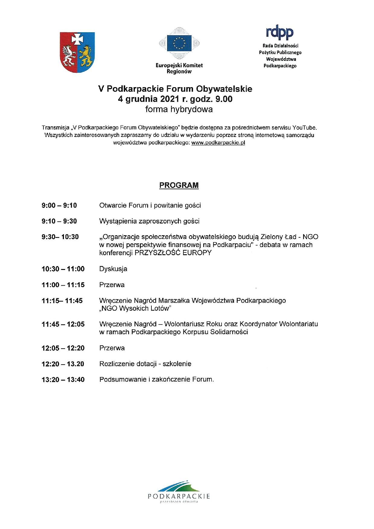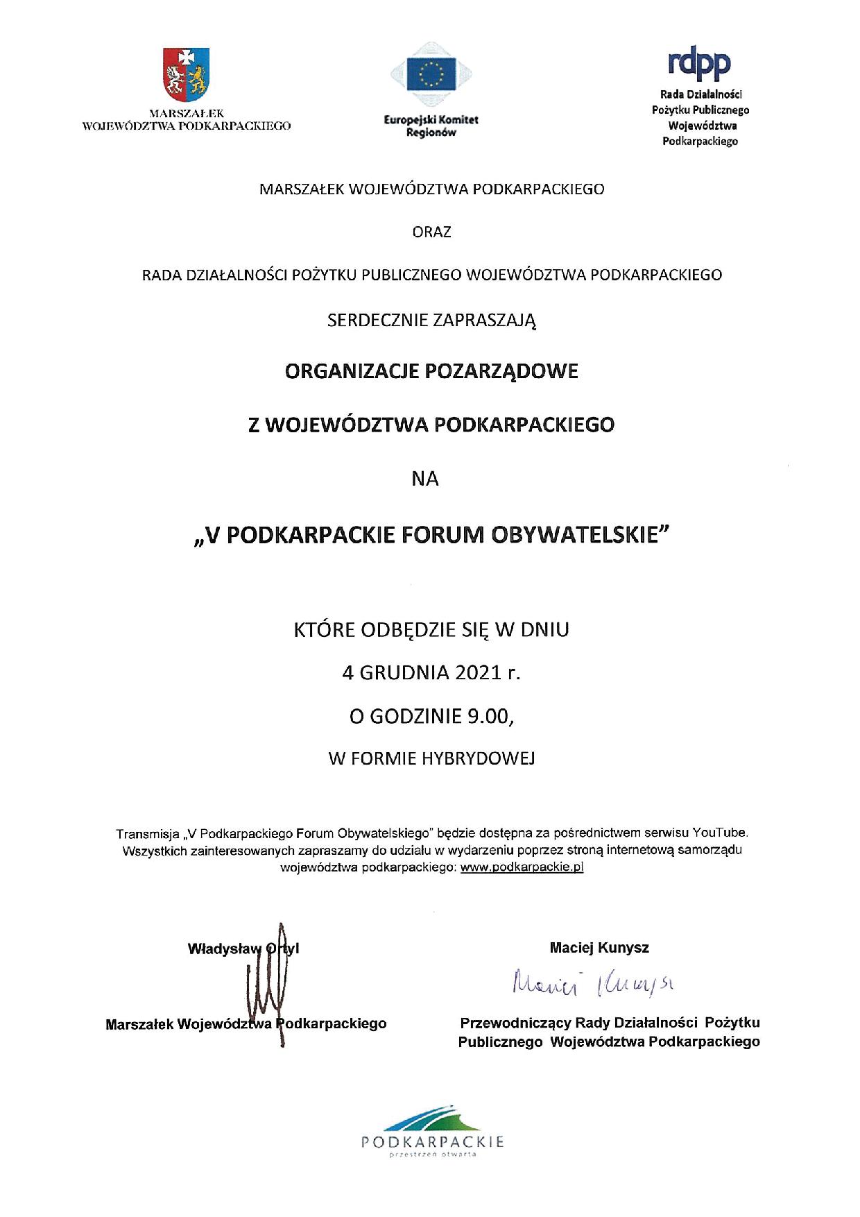 Zaproszenie na V Podkarpackie Forum Obywatelskie.