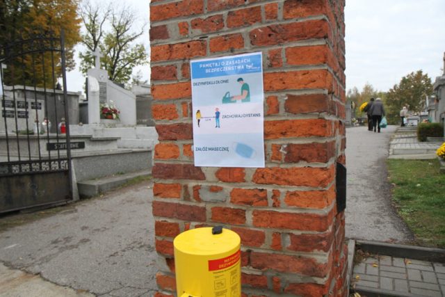 Przy wszystkich mieleckich cmentarzach od kilku dni dostępne są urządzenia do sterylizacji dłoni, zachęcamy do korzystajmy z nich. Ta mała czynność może mieć ogromne znaczenie. Dodatkowo, podobnie jak w każdym innym miejscu na zewnątrz, tak i na terenie cmentarza obowiązuje zasłanianie nosa oraz ust.