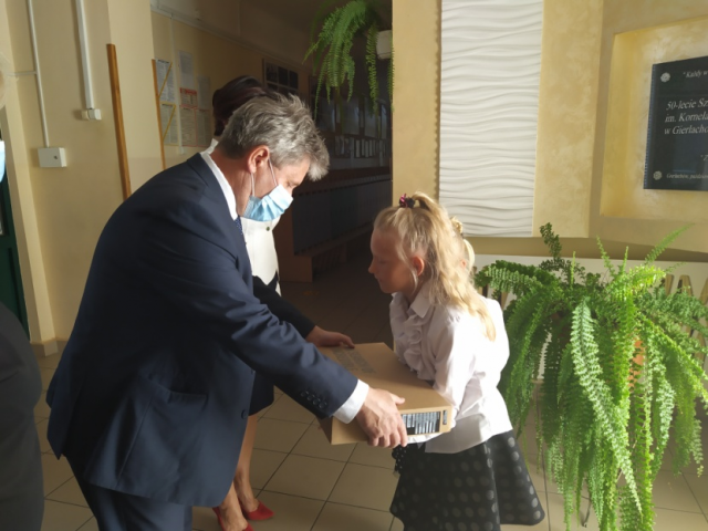 W dniu 22 września 2020 roku w związku z otrzymanym przez Gminę Dwikozy dofinansowaniem na zakup laptopów ze środków Europejskiego Funduszu Rozwoju Regionalnego w ramach programu pn. Zdalna Szkoła + do szkół zostały przekazane komputery. Otrzymane dofinansowanie pozwoliło na zakup aż 20 nowych laptopów i 1 poleasingowego za kwotę 54 999,27 zł. Komputery trafiły do szkoły im. Powstańców Styczniowych w Dwikozach oraz do szkół Stowarzyszeniowych na terenie Naszej Gminy. Będą służyły dzieciom z rodzin wielodzietnych na czas zdalnego nauczania. Przydział komputerów do szkół: S.P. w Dwikozach – 13 nowych + 1 poleasingowy, S.P. we Mściowie – 2, S.P. w Słupczy – 2, S.P w Winiarach – 1, S.P. w Gierlachowie – 1, S.P.w Starym Garbowie – 1. Realizacja projektu była okazją do odwiedzin Szkół Podstawowych w Gierlachowie, Słupczy oraz Dwikozach przez Wójta Gminy Pana Marka Łukaszka oraz Dyrektora Zespołu Administracyjnego Jednostek Oświatowych Panią Iwonę Korczyńską-Sapielak.