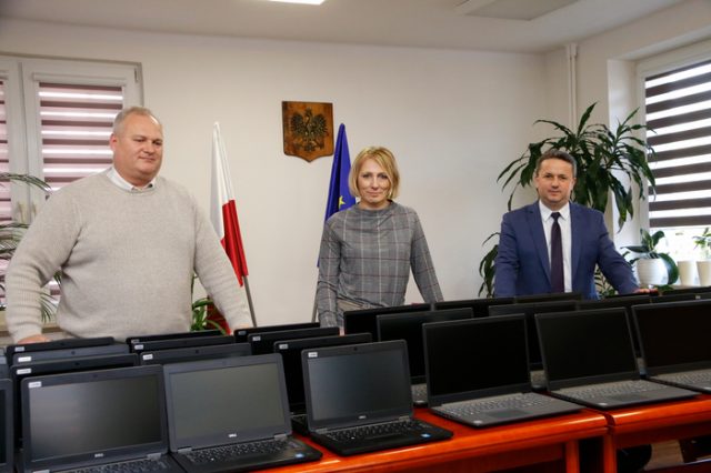 Gmina Staszów kupiła 41 laptopów dla uczniów i nauczycieli staszowskich szkół. Sprzęt pomoże uczniom i nauczycielom w realizowaniu zadań w ramach zdalnego nauczania.
